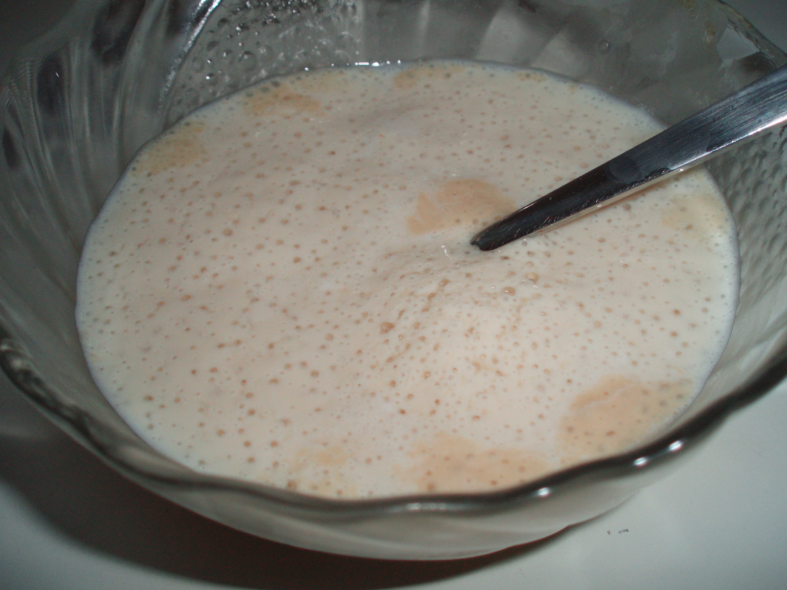 1. Mazā bļodiņā iejauc raugu, pustējkaroti cukura un siltu pienu.