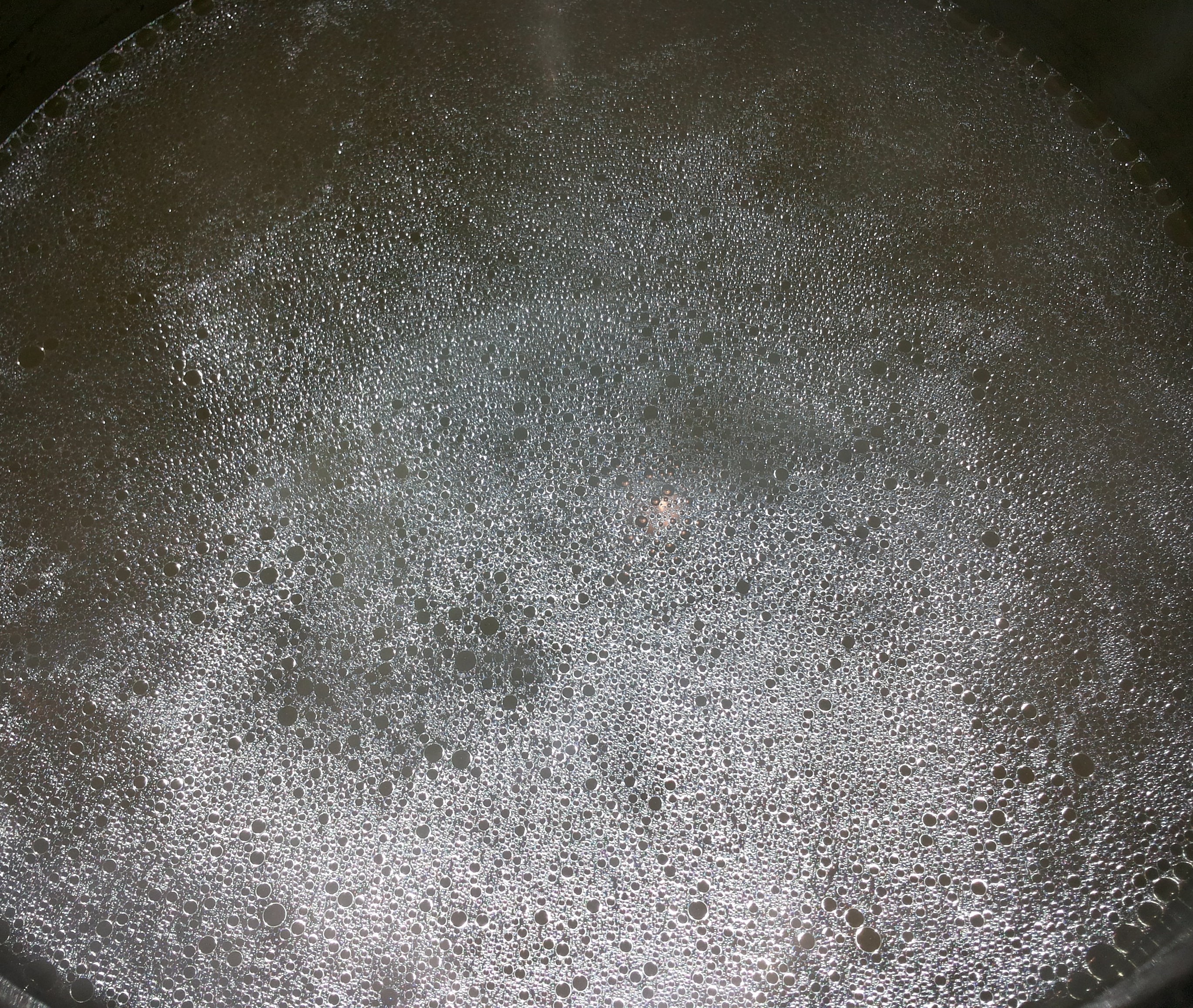 2. Kamēr mazgā katlu un gaļu, tējkannā uzliek vārīties ūdeni, ko pēc tam uzlej vistai un liek atkal uz uguns. Var liet arī vēsu ūdeni, nekādu problēmu tikai laika jautājums. Ūdeni pievieno 1,5 līdz 2 litri atkarībā no katla ietilpības.