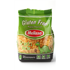70 g Bezglutēna makaroni Melissa dinozauru formā, nopērkami Rimi un Maxima