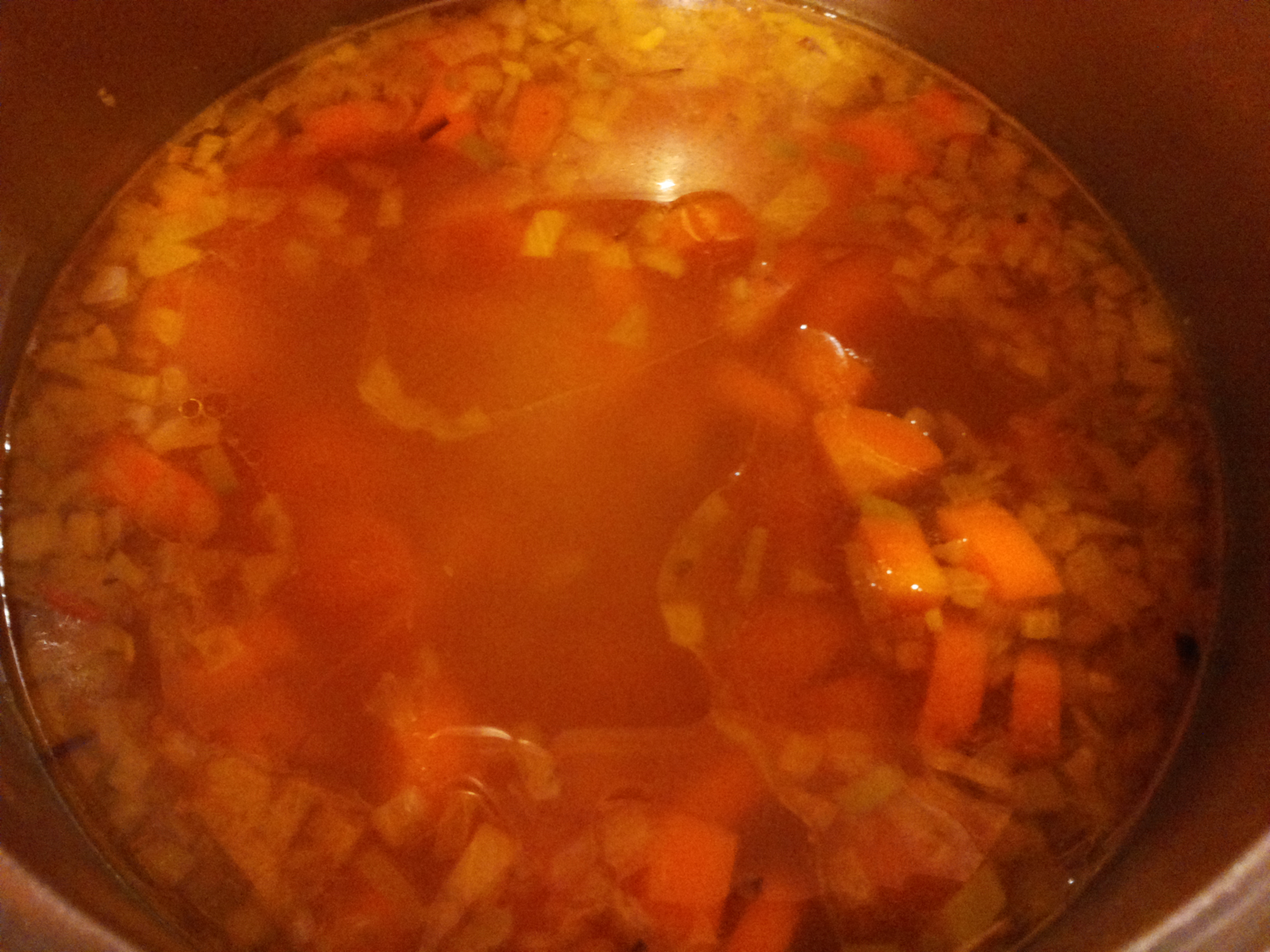1. Izņem no saldētavas iepriekš pagatavotu buljonu. Ja tādas greznības mājā nav, tad ķeras pie buljona vārīšanas vai buljona kubiņiem – no Gefro, Naturata vai citiem bezglutēna variantiem.