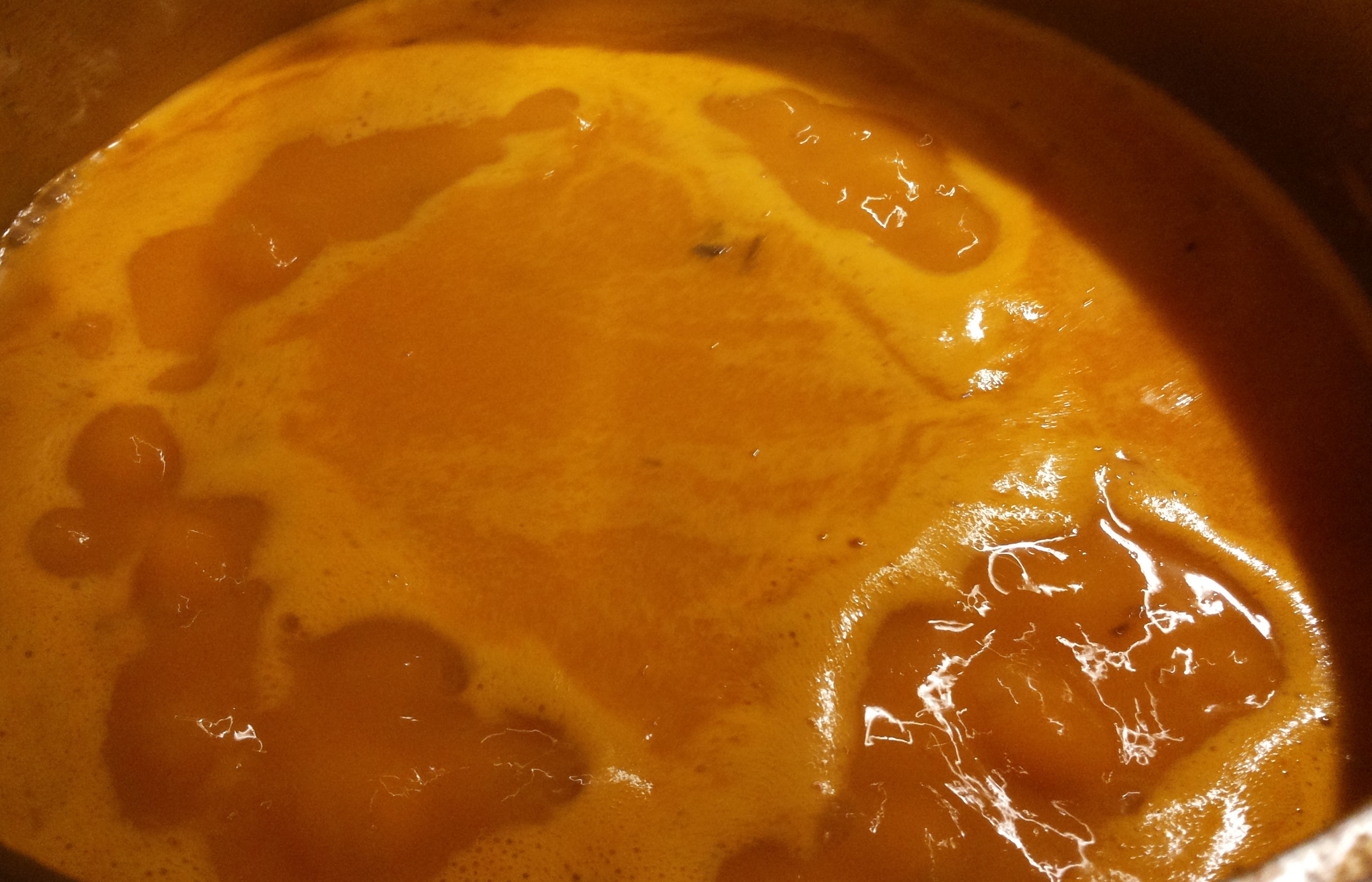 7. Pēc brīža iegūto zupu sablenderē ar blenderkāju. Galvenais, lai blenderis ir iekšā šķidrumā, kad to iedarbina, tad nekas nekur nešķīst. Ja gribas pārvietot, tad izlēdz pirms izceļ no šķidruma, ieslēdz tikai, kad atkal ir iegremdēts.