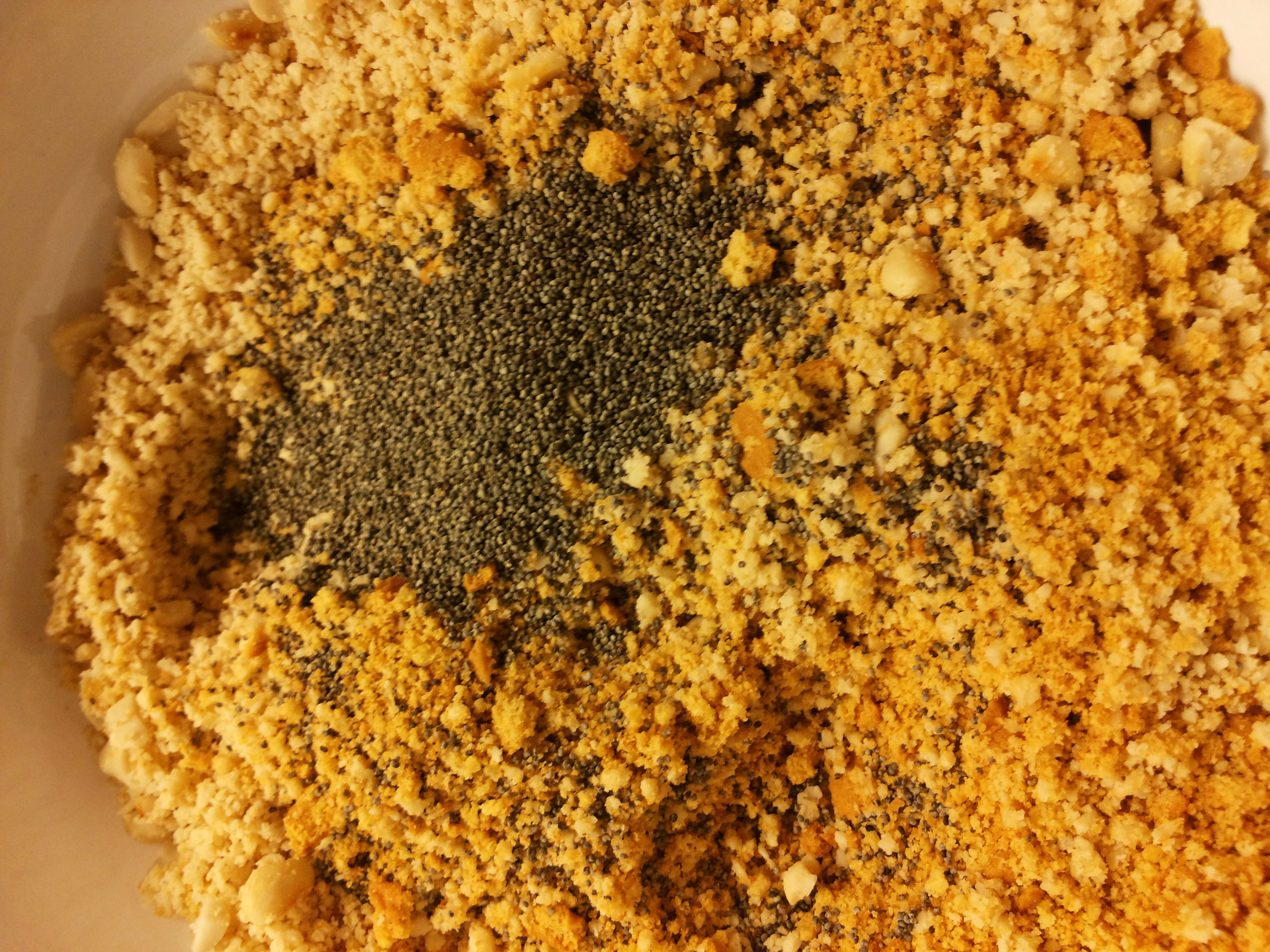2-3 ēdamkarotes magoņu sēkliņu vai smalcinātu riekstu vai cepumu